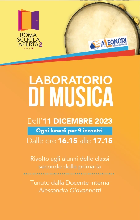 A partire dall’11 dicembre 2023 si svolgerà, presso il plesso di via Funi 41, un laboratorio musicale vocale polifonico, con utilizzo della body percussion e semplici coreografie di ballo, rivolto a 15 alunni delle classi seconde della scuola Primaria.