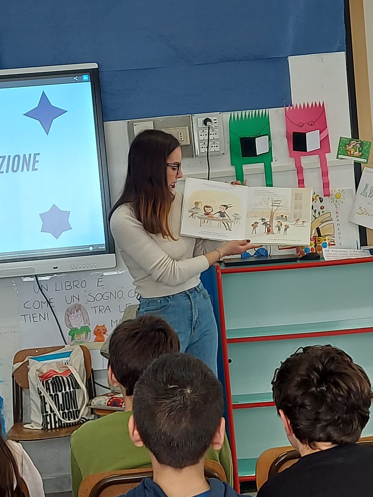 Dopo un breve video informativo sulla Biblioteca Sandro Onofri, le operatrici hanno letto delle storie agli alunni e messo a disposizione dei libri che avevano portato.
