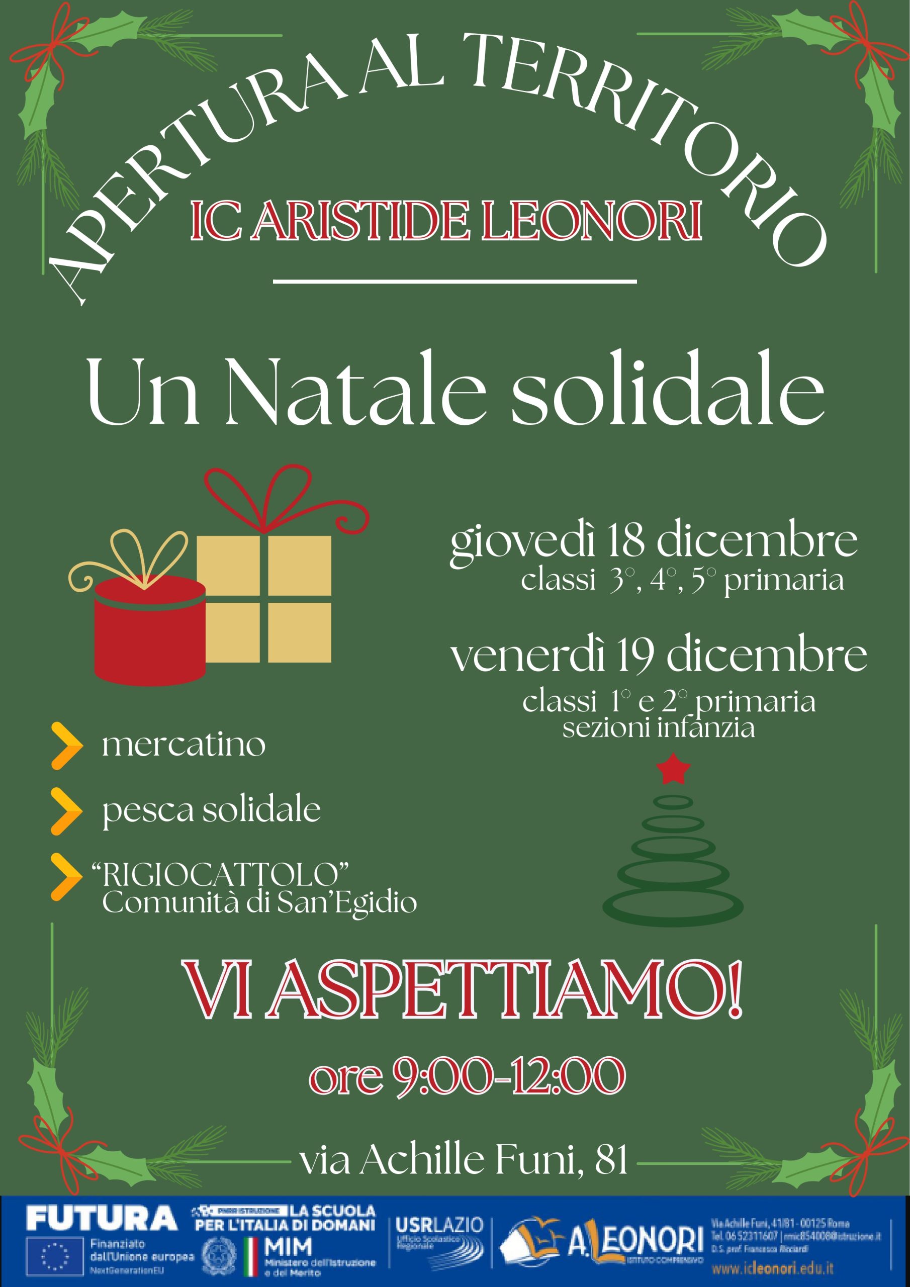 Iniziativa Natale Solidale – giornate di apertura al territorio –- 18 e 19 dicembre 2025 – Scuola dell’Infanzia e Scuola Primaria