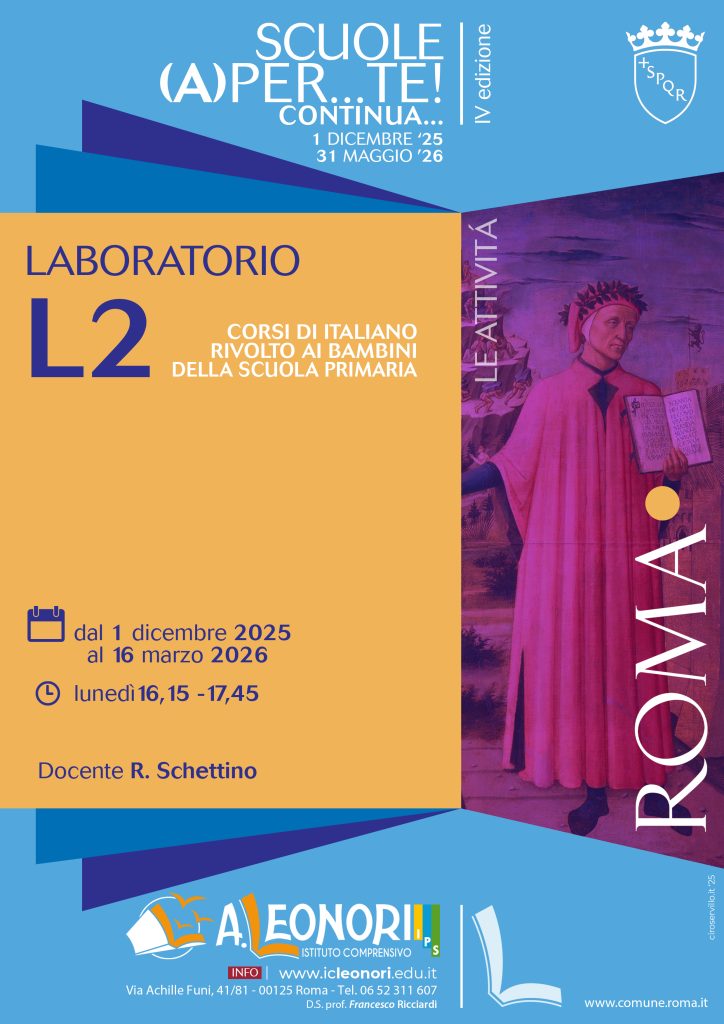 Il Laboratorio di italiano L2 è un mezzo efficace per rispondere ai bisogni di bambini/e, soprattutto quando giungono in Italia e vengono inseriti a scuola nell’età ̀ dell’obbligo formativo. Inoltre, svolgendosi in orario pomeridiano, permette agli alunni di seguire regolarmente le lezioni insieme ai compagni.